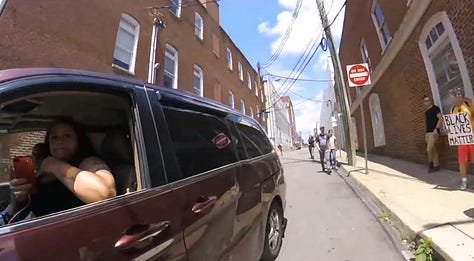 I have lots more stuff I will share shortly, which includes the full “behind the scenes” video which is the source of this short video clip, as well as still image of the lady sitting in the drivers seat of the mini-van. The same lady who much later would then somehow end up sprawled across the hood of her own vehicle.